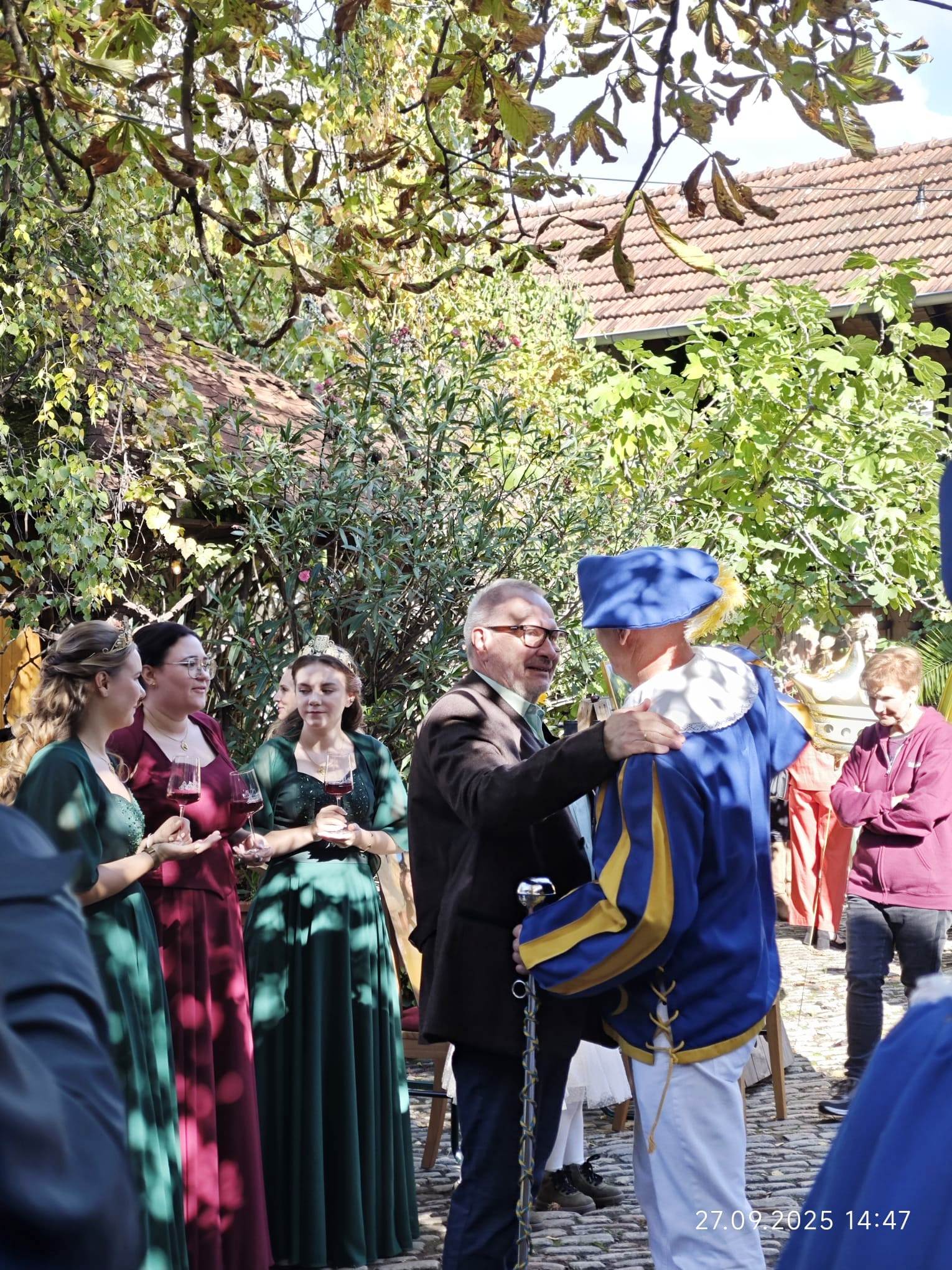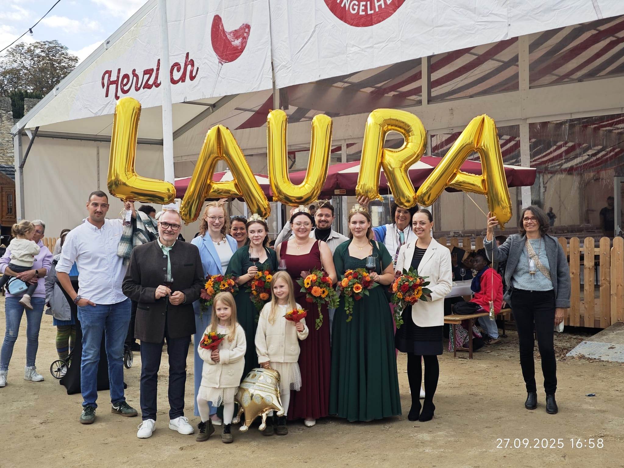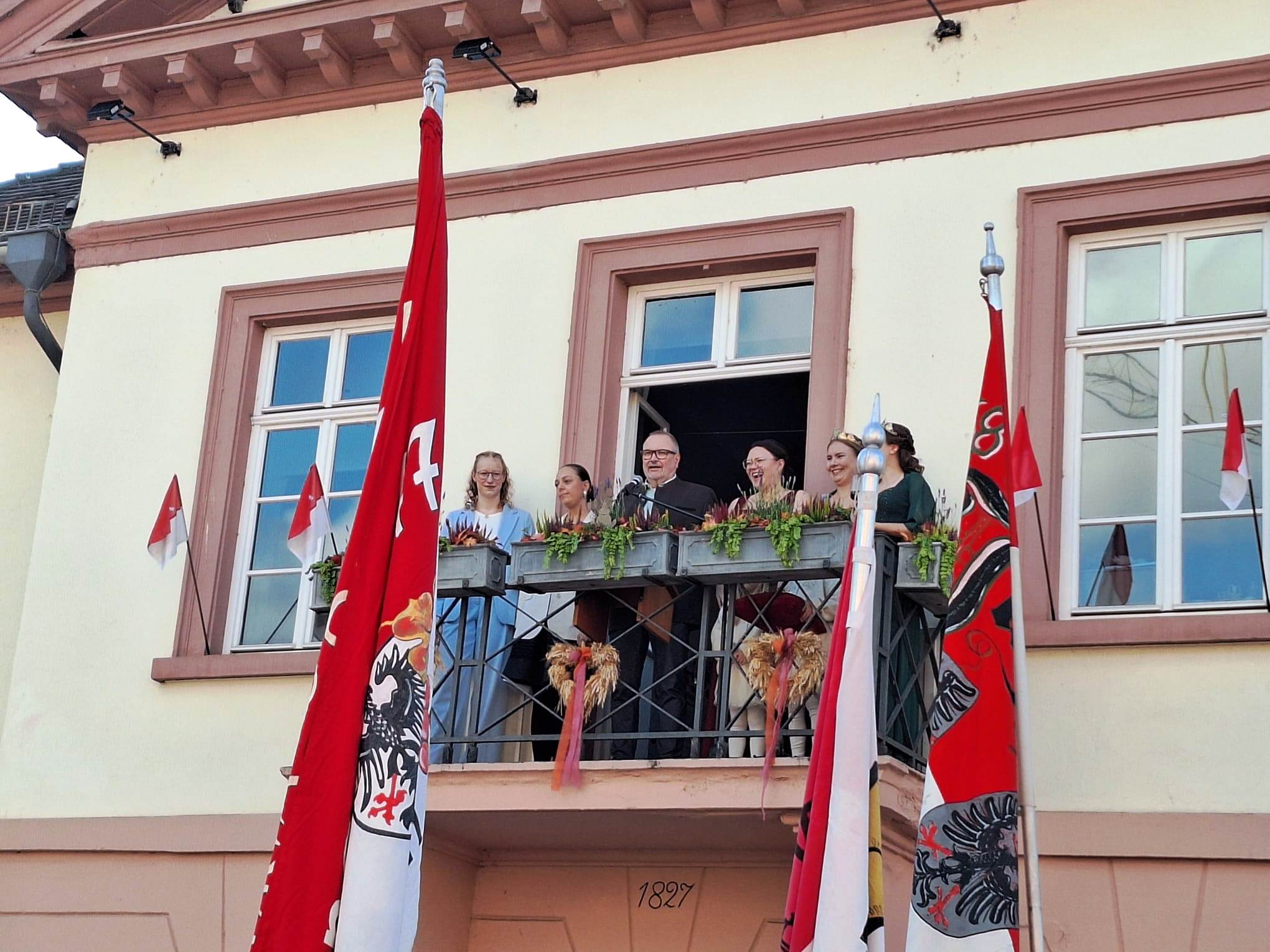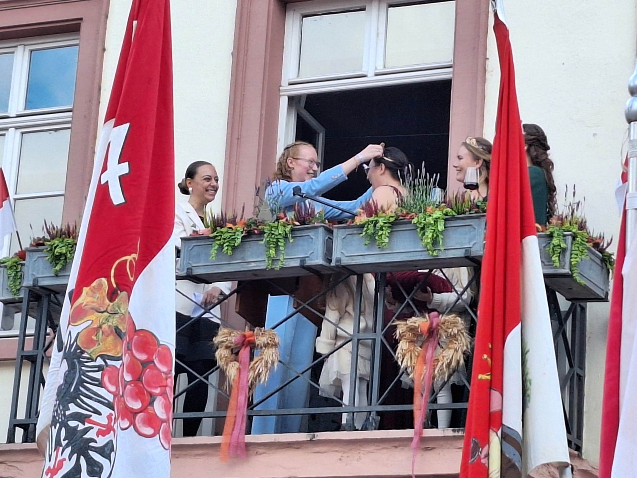 auf dem Balkon findet die Krönung der neuen Rotweinkönigin statt